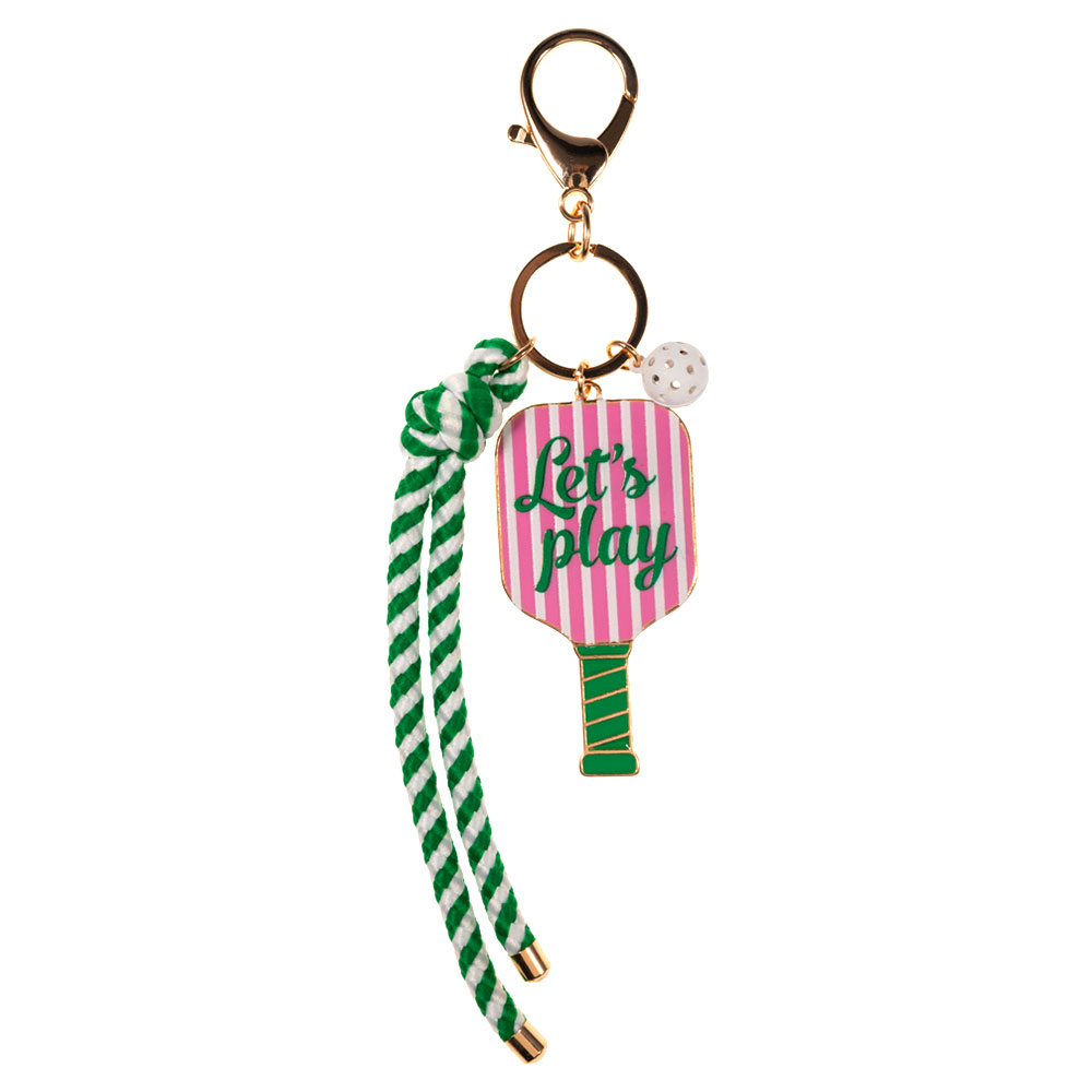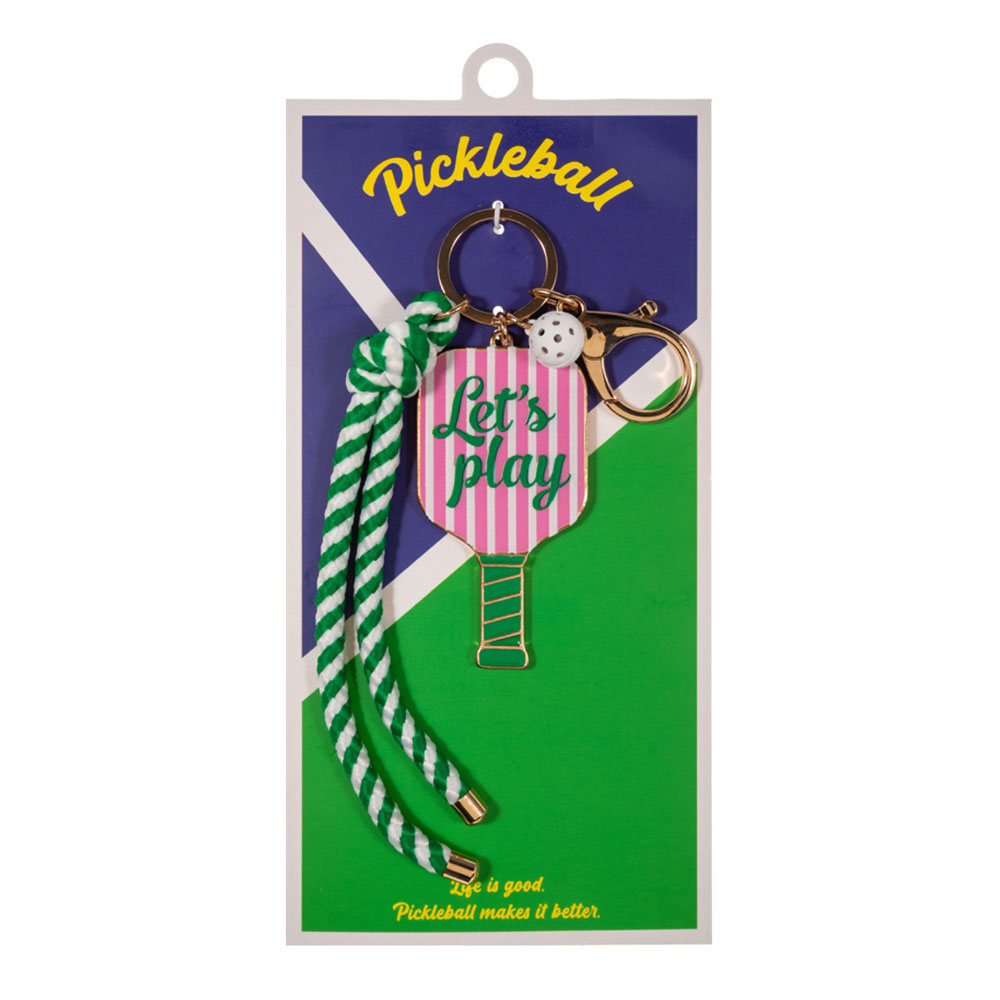 Details • Size : 6.25" L, 1.5" X 5.5" • This playful pickleball paddle keychain bag charm features a sporty paddle design with themed accents that make it a fun accessory for keys, backpacks, or bags. Ideal for pickleball fans, it adds personality, gifting appeal, and everyday style while keeping essentials easy to find. • Lead and Nickel Compliant
