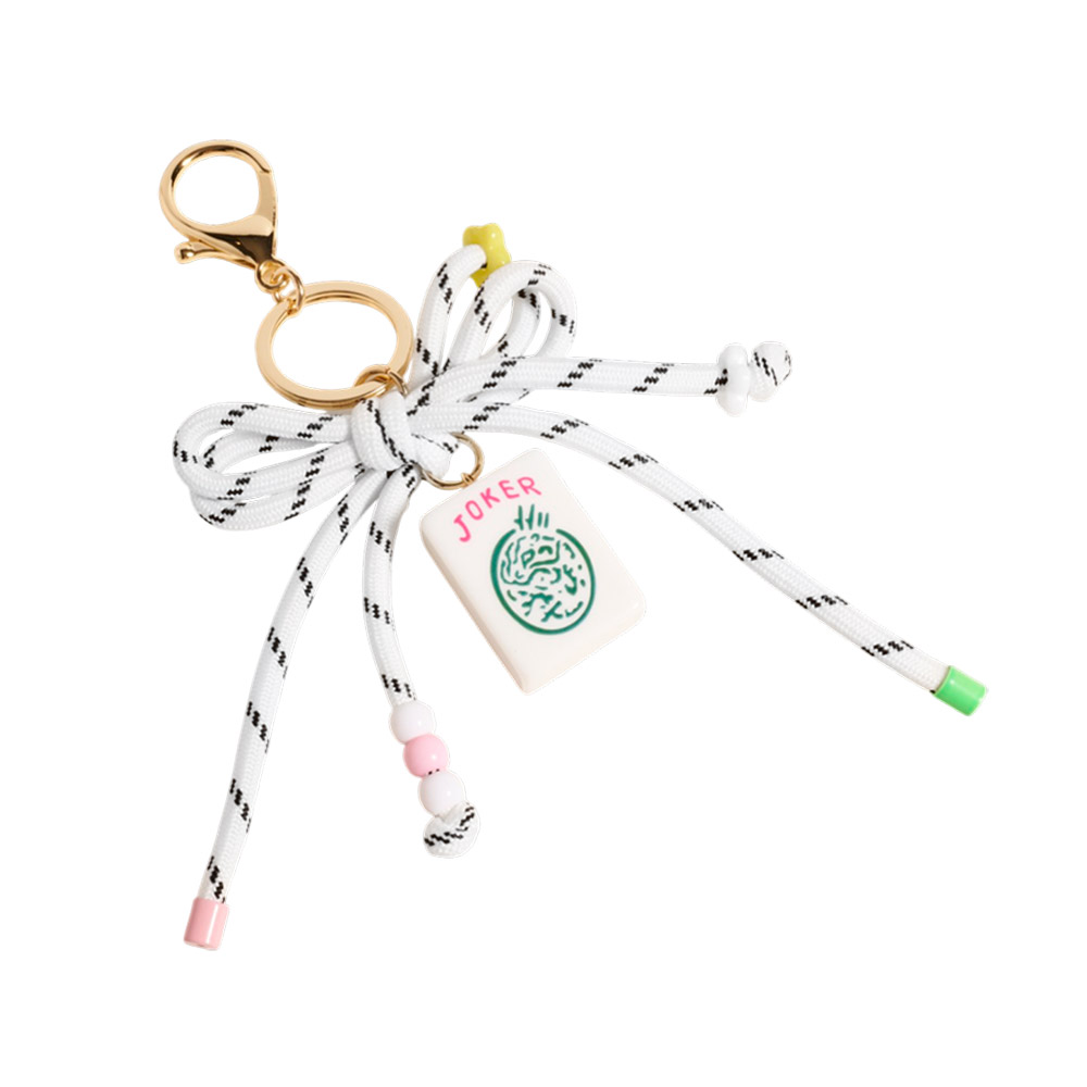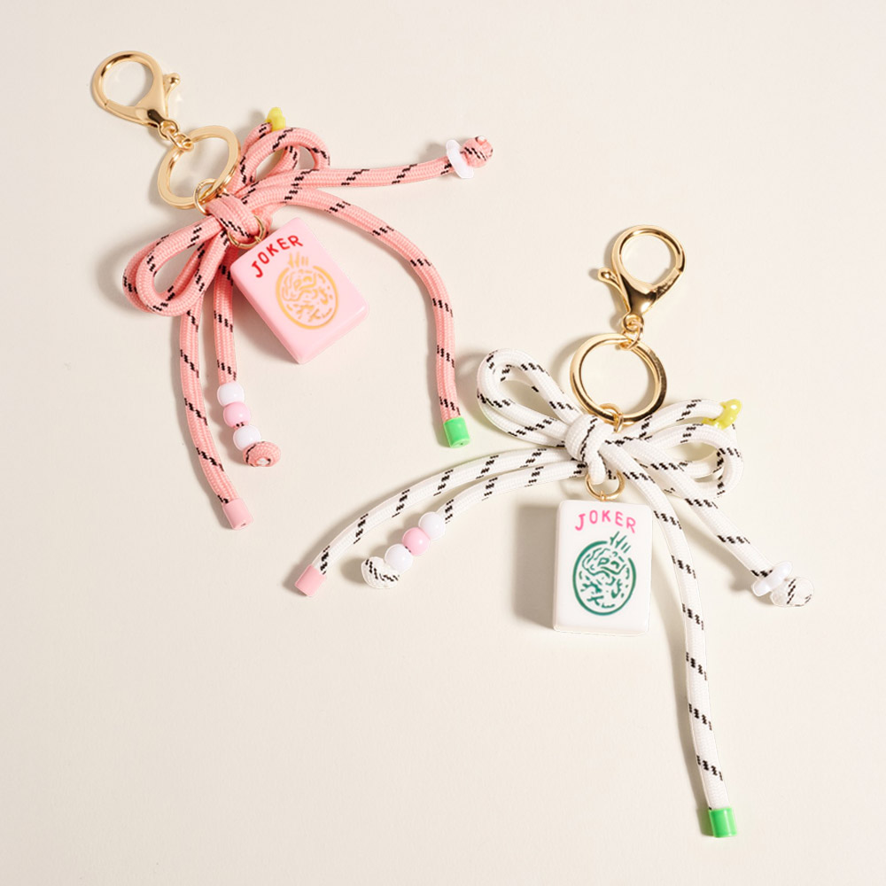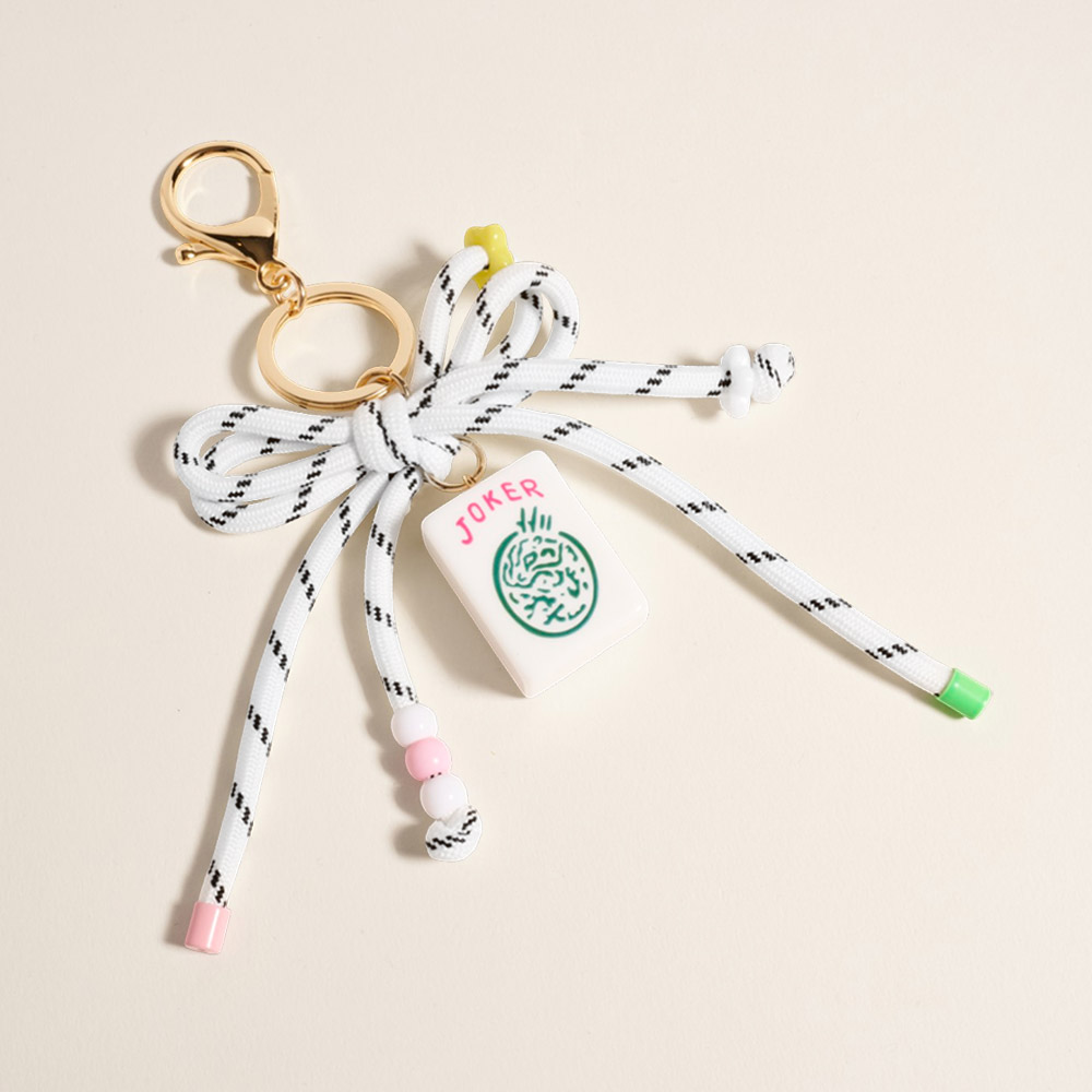 Mahjong Tile Drop Bow Knot Strap Keychain Bag Charm