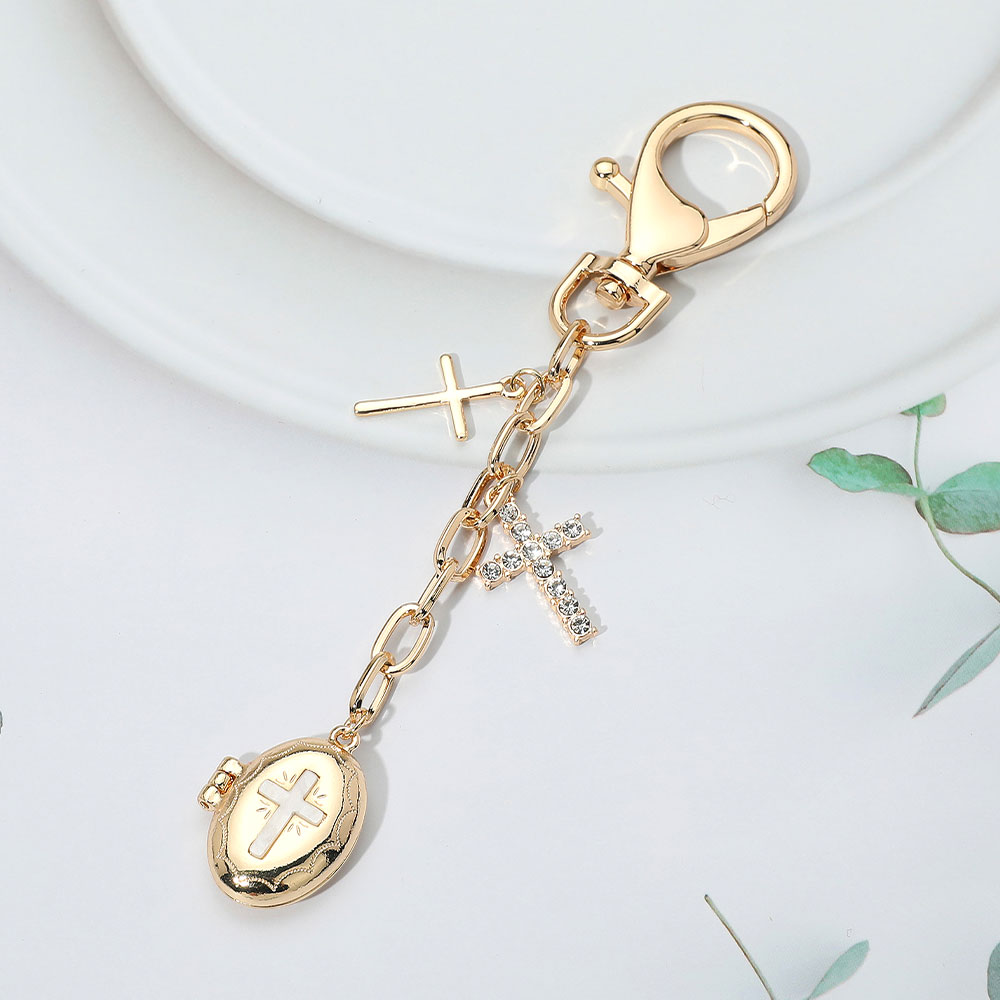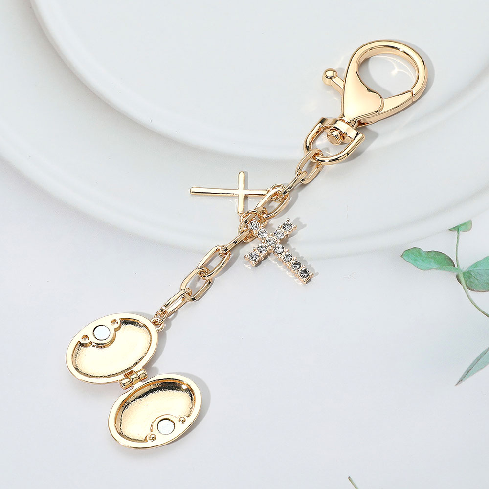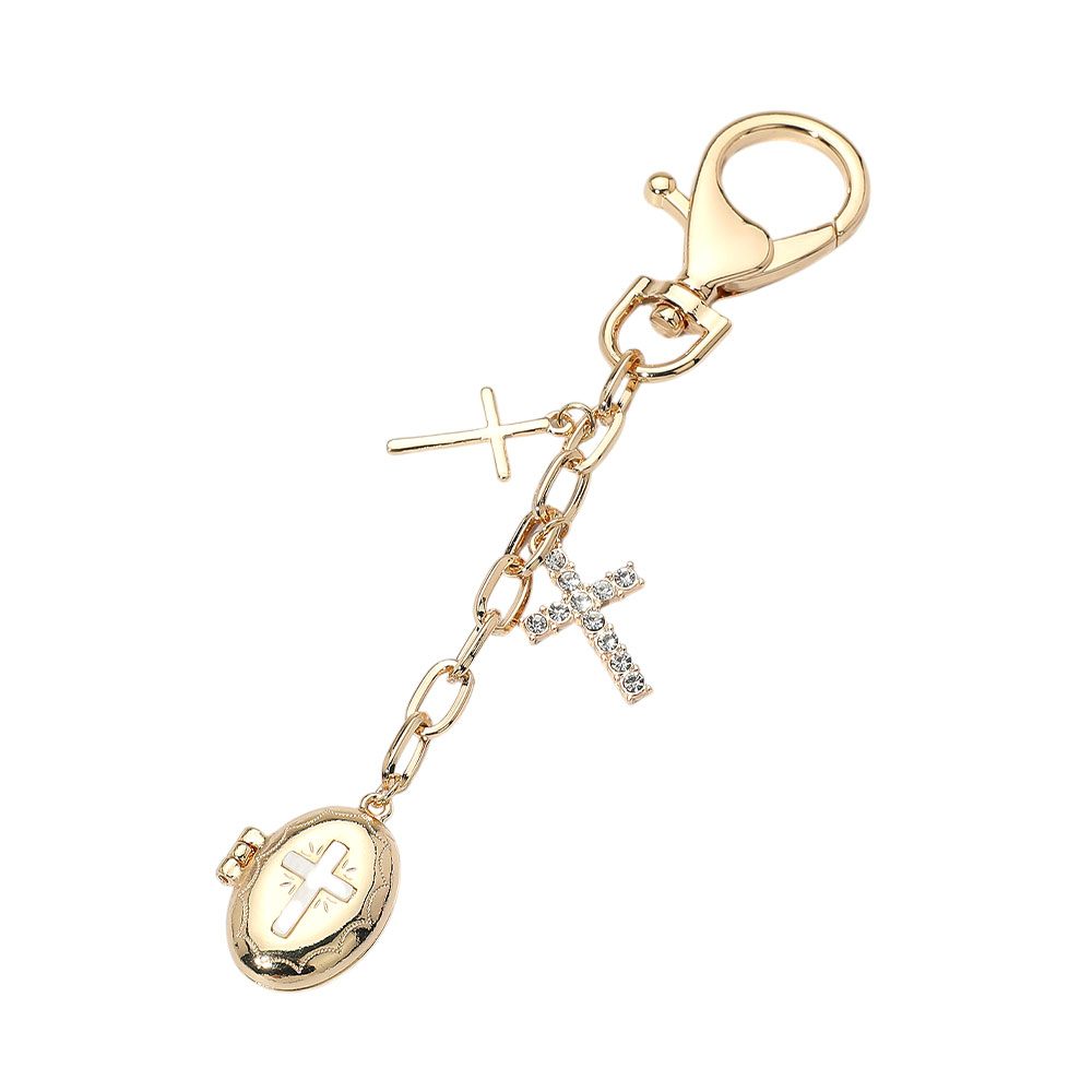 Mother of Pearl Cross Oval Locket Stone Paved Cross Charm Drop Keychain / Bag Charm