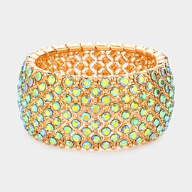 Polished Metal Accent Resin Pebble Beaded Stretch Bracelet