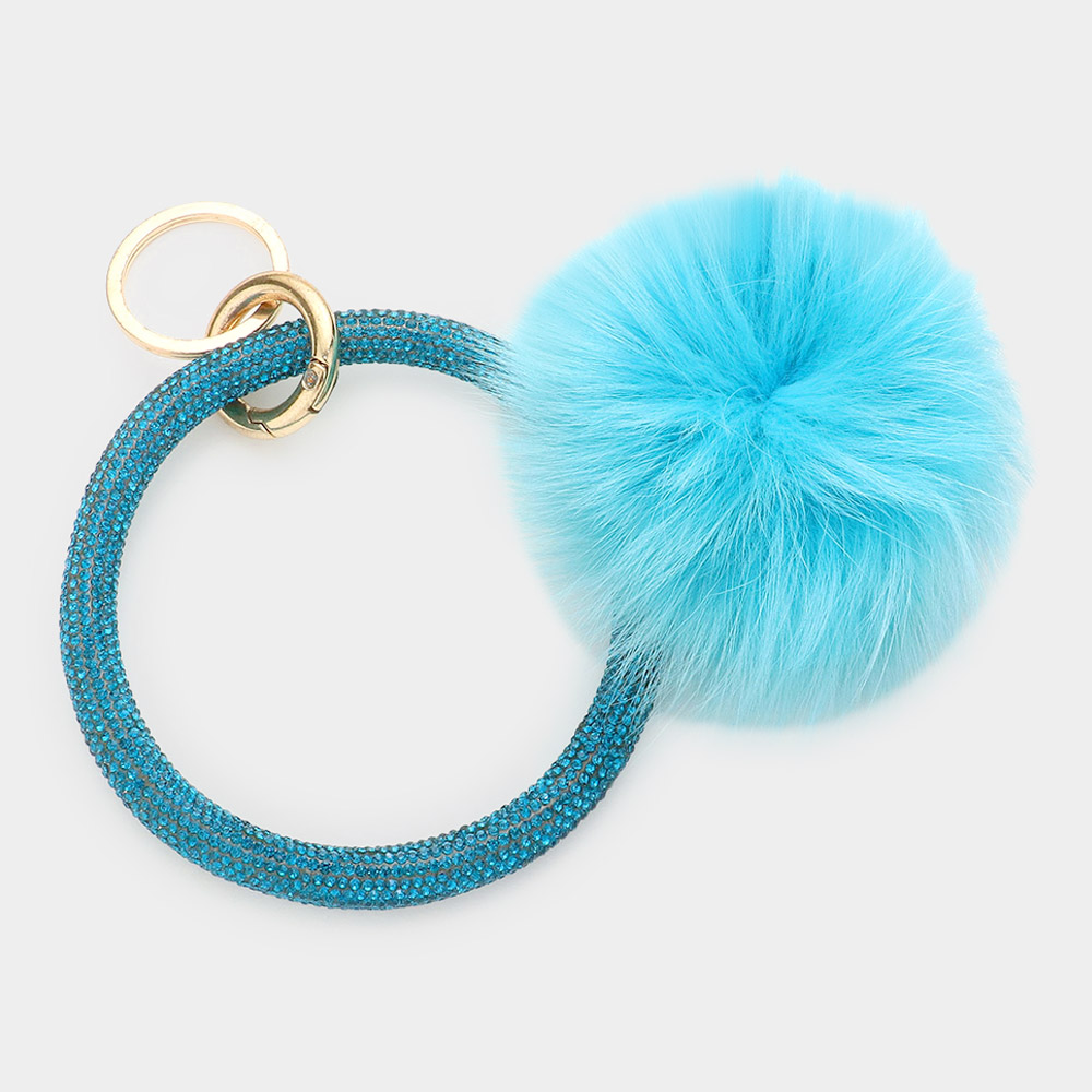 Pom Pom Rhinestone Pave Bangle Keychain / Bracelet