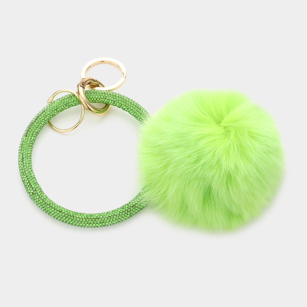 Pom Pom Rhinestone Pave Bangle Keychain / Bracelet
