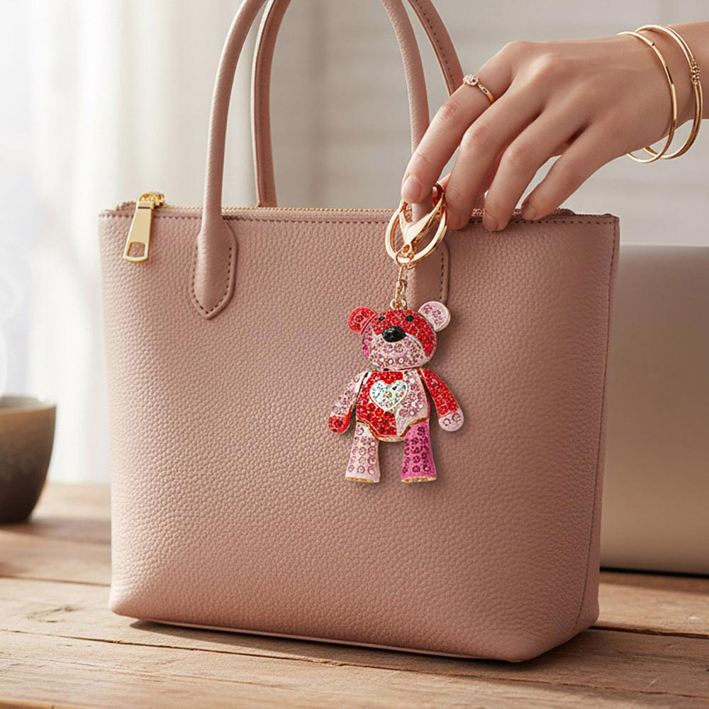 • Rhinestone teddy bear keychain charm featuring a playful character design that adds fun personality to keys, handbags, backpacks, and zipper pulls. A great boutique accessory for gifting, impulse buys, party favors, and everyday carry, appealing to customers who love cute, collectible statement charms.