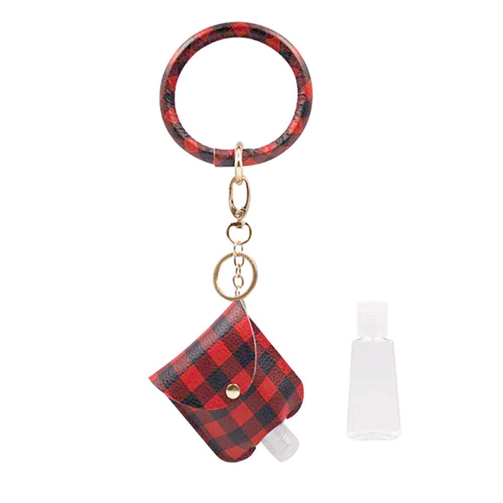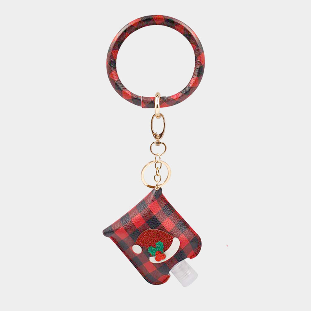 • Festive plaid hand sanitizer holder keychain featuring a cheerful Santa hat accent for stylish on-the-go convenience. Easily clips to bags, purses, or wristlets to keep sanitizer within reach, making it ideal for daily errands, travel, holiday outings, parties, and seasonal gift giving.