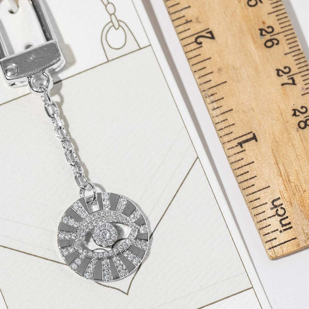 White Gold Dipped CZ Pave Evil Eye Drop Keychain Bag Charm
