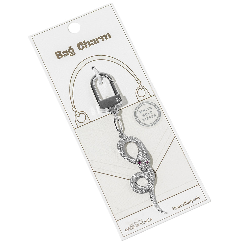 White Gold Dipped CZ Pave Snake Drop Keychain Bag Charm White Gold Dipped CZ Pave Snake Drop Keychain Bag Charm White Gold Dipped CZ Pave Snake Drop Keychain Bag Charm White Gold Dipped CZ Pave Snake Drop Keychain Bag Charm