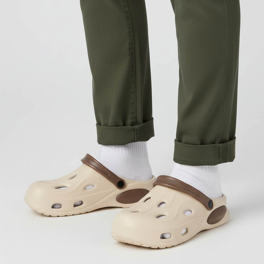 • Everyday clog style footwear featuring a breathable perforated design, cushioned footbed, and flexible heel strap for wear as a slide or secure fit. Lightweight and easy to style for casual days and travel.