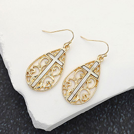 Happy New Year Message Printed Stone Trimmed Metal Teardrop Dangle Earrings