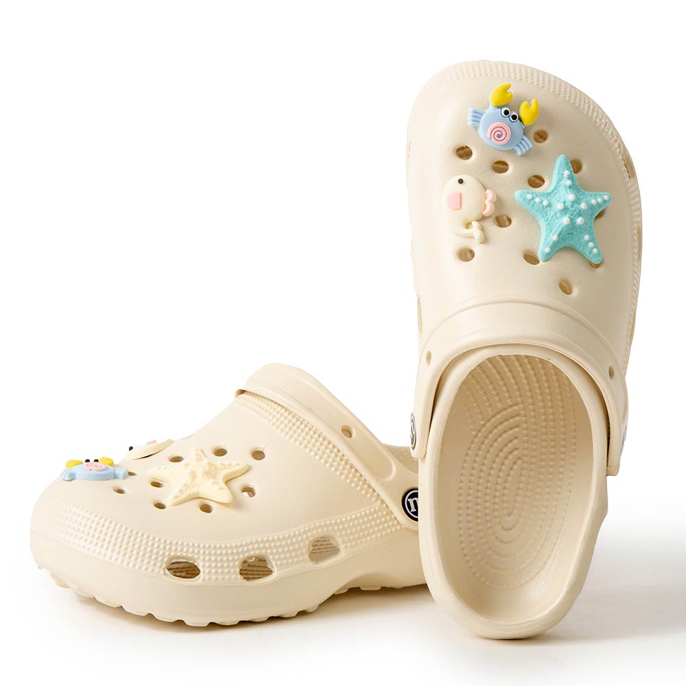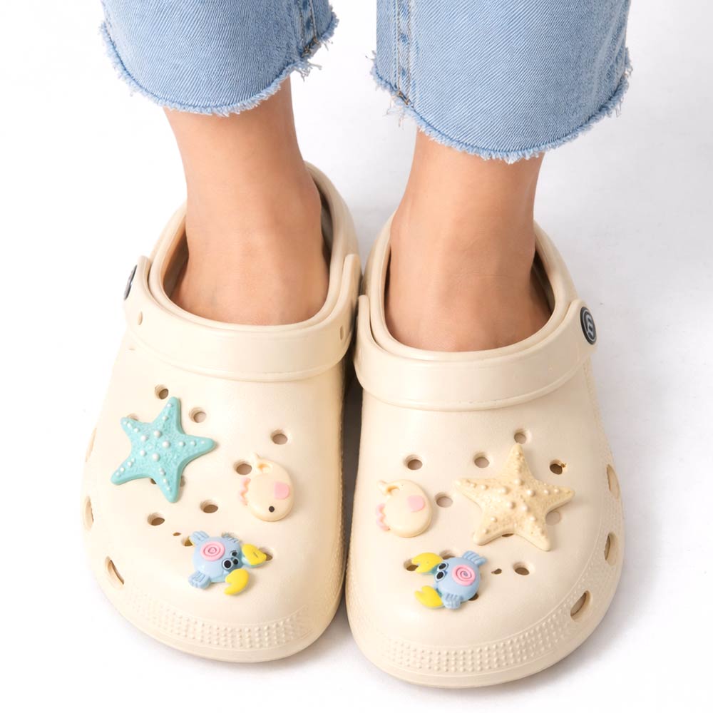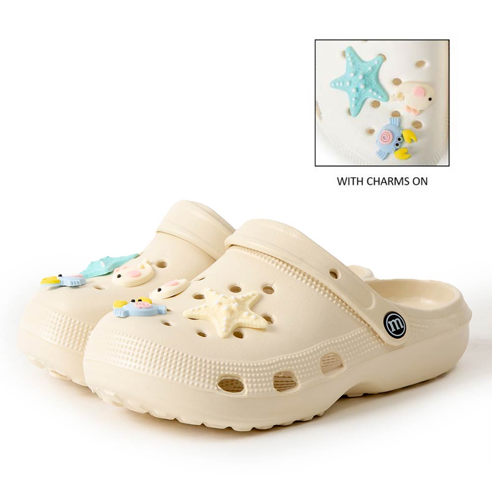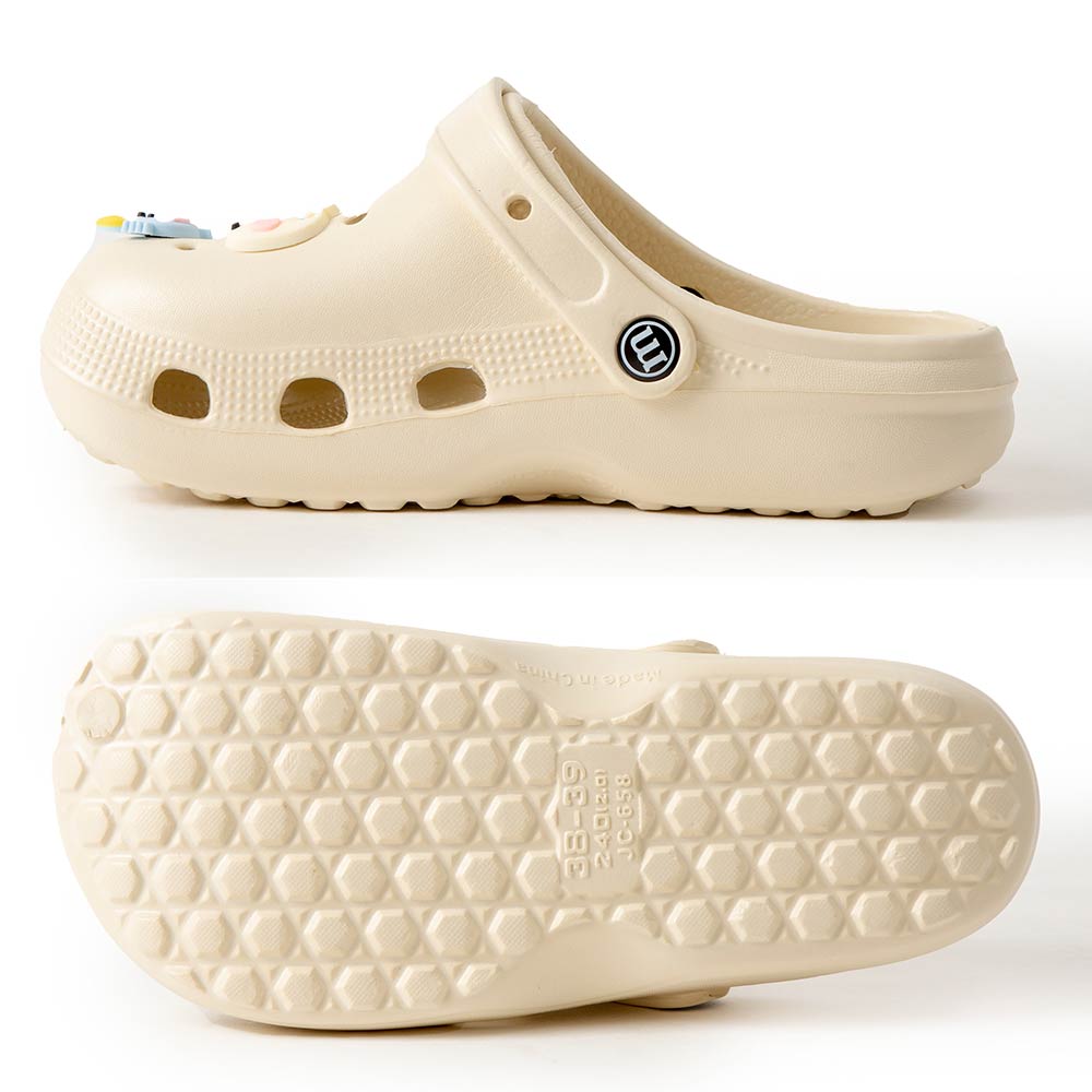 • Playful clog style footwear designed with fun decorative charms, breathable perforations, and a cushioned footbed for everyday comfort. Features a pivot heel strap for secure wear or easy slip-on styling, ideal for casual outings, travel, and relaxed daily looks.