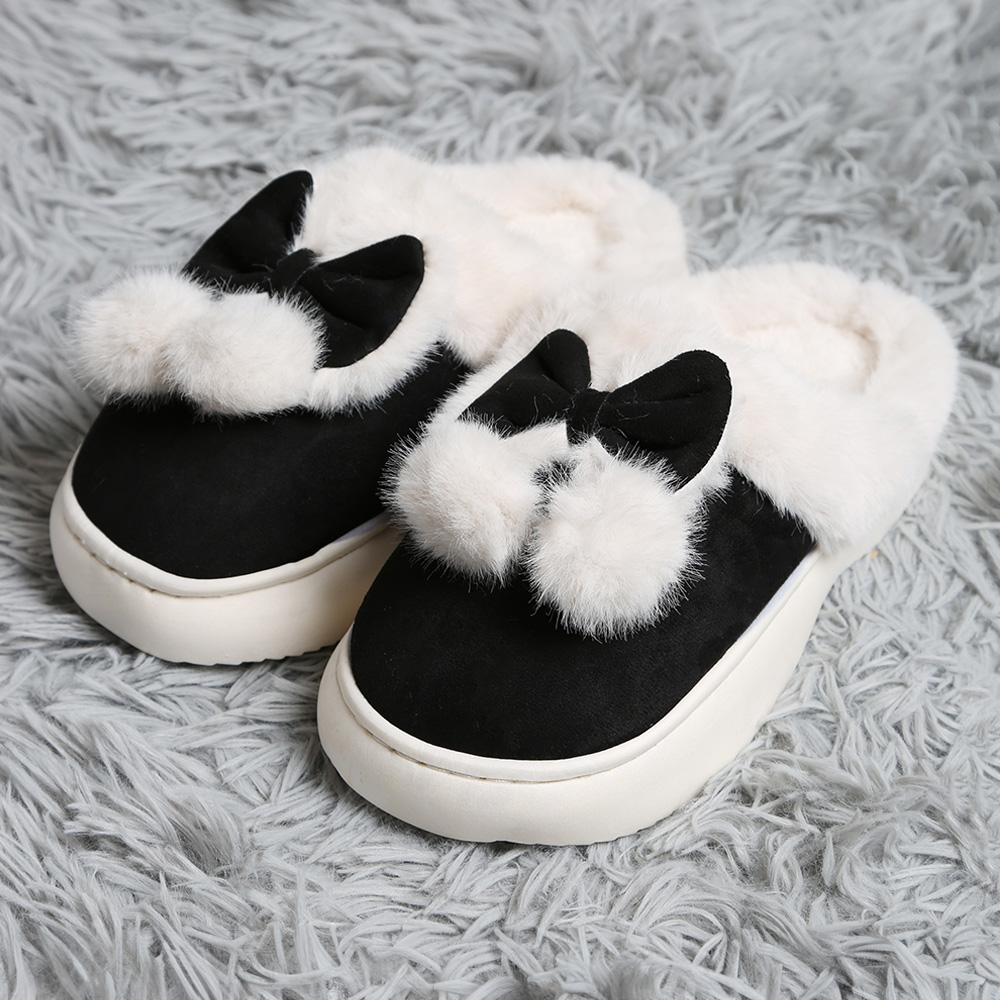 Bow Pom Pom Pointed Faux Suede Indoor Floor Slippers