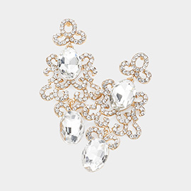 Round Stone Centered Rhinestone Flower Stretch Ring