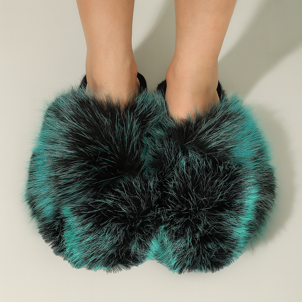 Fluffy Faux Fox Fur Indoor Floor Slippers