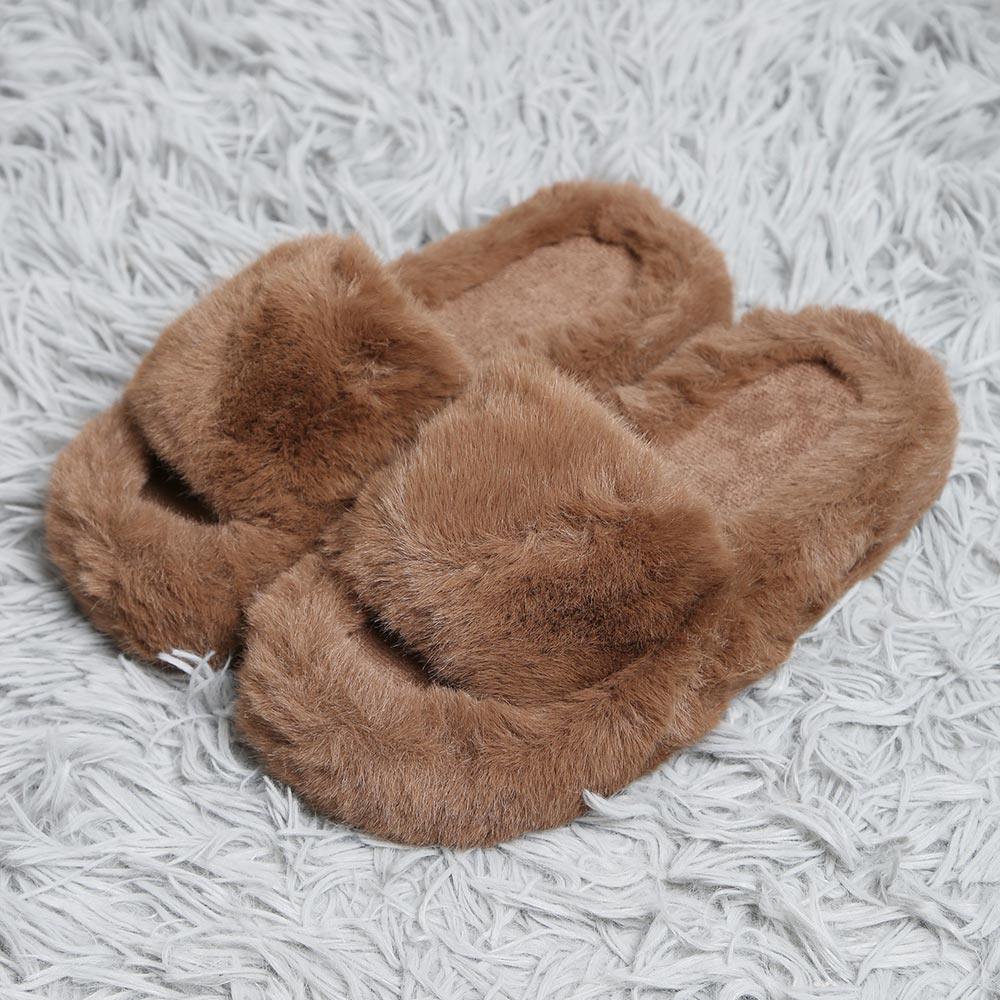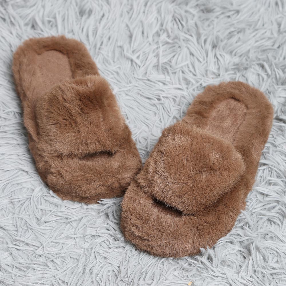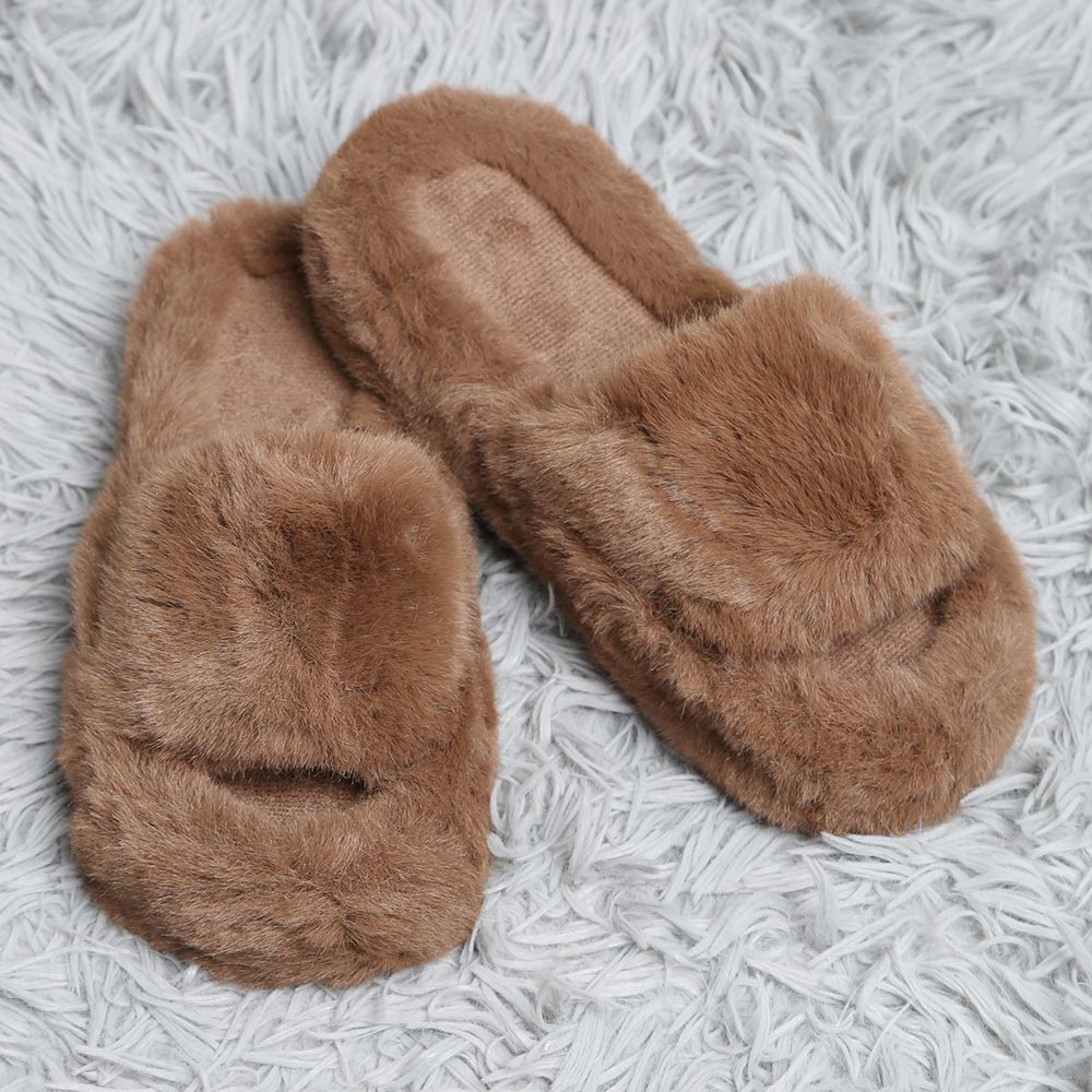 Fuzzy Solid Color Open Toe Indoor Floor Slippers