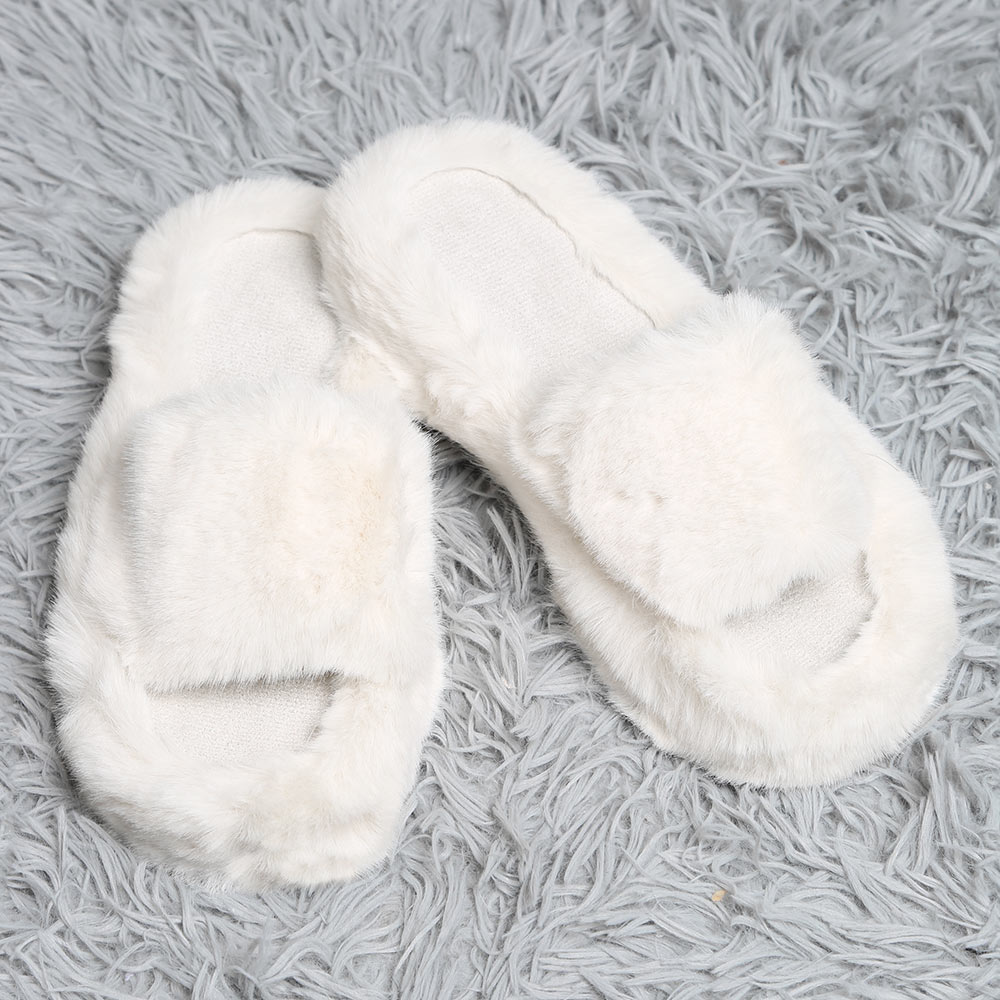 Fuzzy Solid Color Open Toe Indoor Floor Slippers