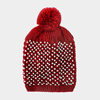 Pearl Jewel Embellished Fleece Lining Knit Beanie Hat
