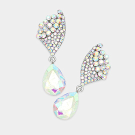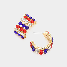 American USA Flag Dropped Rhinestone Dangle Evening Earrings