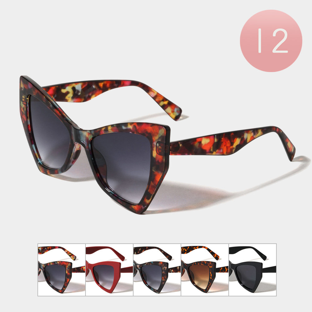 12PCS - Bold Cat Eye Frame Wayfarer Sunglasses