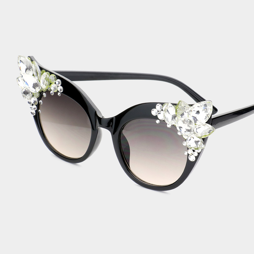 Rectangular Glass Stone Cluster Dangle Evening Earrings