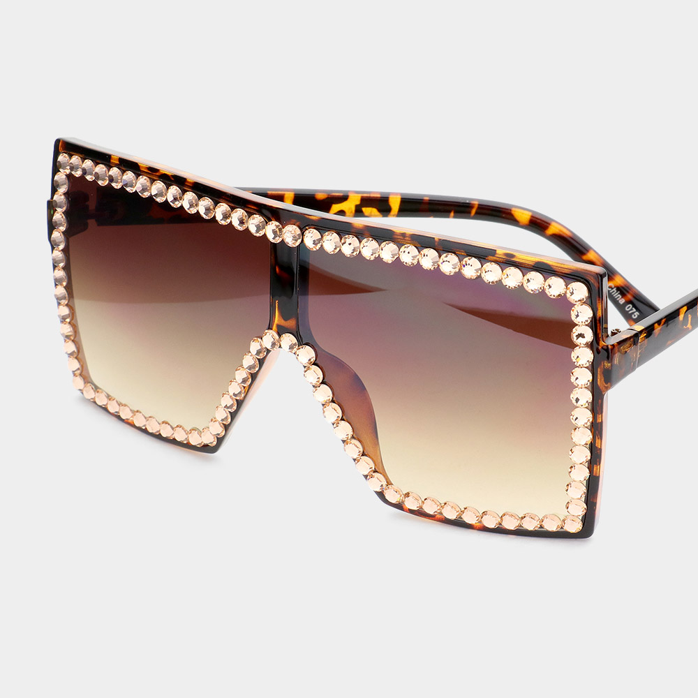Crystal Embellished Detail Square Sunglasses