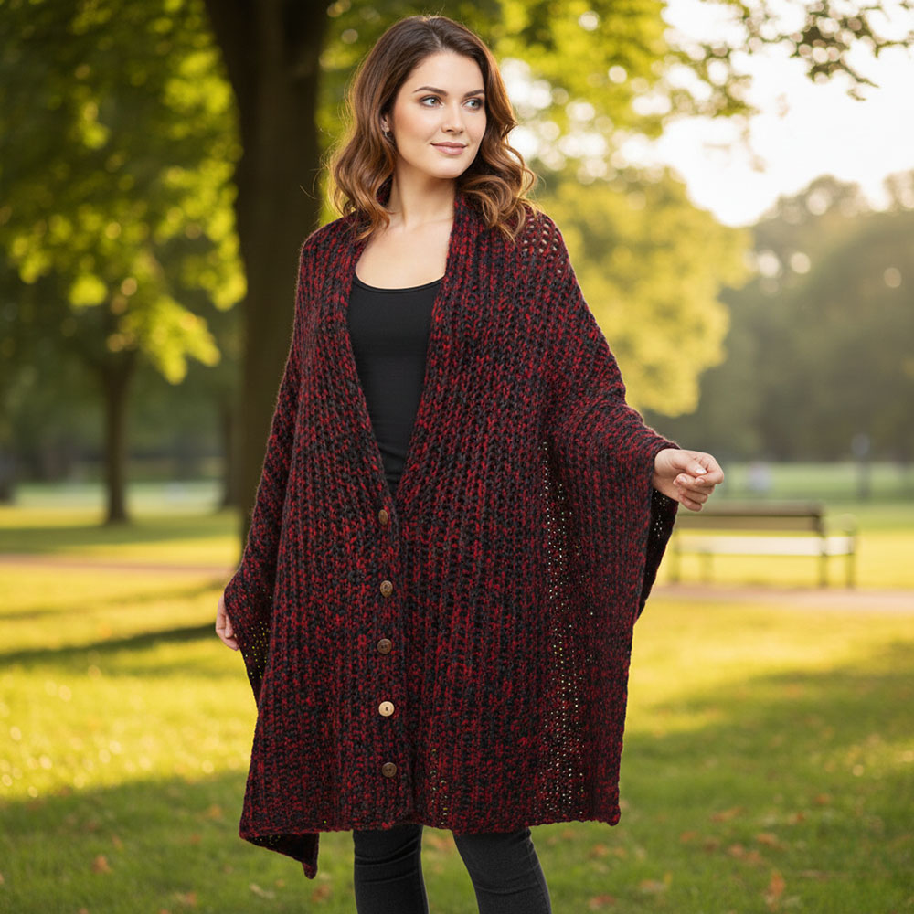 • A versatile knit wrap with functional buttons that allow multiple styling options. Wear it as a draped layer, a cozy scarf, or a relaxed poncho. Designed for effortless transitions and everyday comfort.