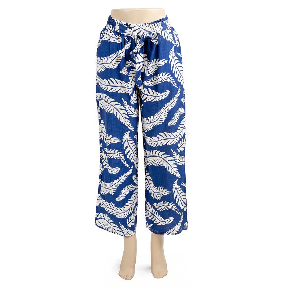 • Relaxed wide leg pants featuring an allover leaf-inspired print and a comfortable elastic waistband. Designed for easy pull-on wear, these flowy pants offer a flattering drape and effortless movement. Ideal for casual styling, travel outfits, or boutique assortments, they pair perfectly with simple tops and layered looks for versatile, everyday appeal.