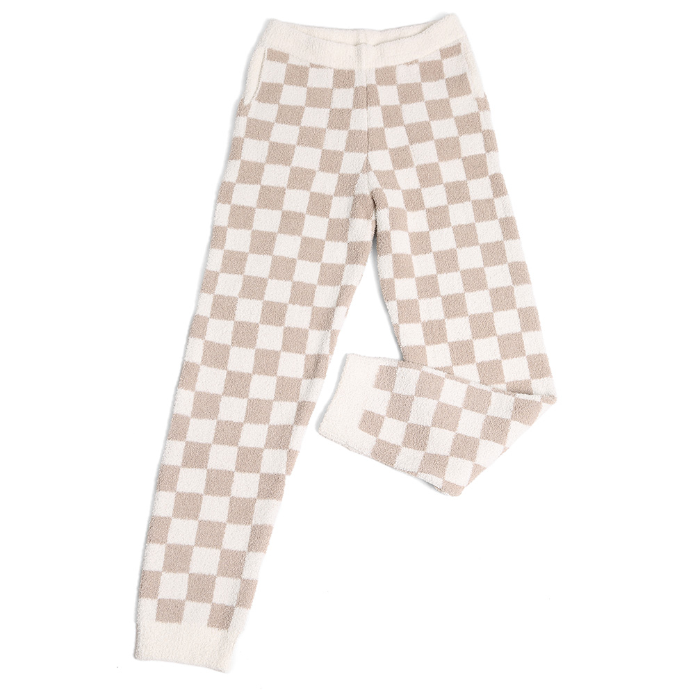 • Unwind in comfort with this checkered knit lounge set, featuring a long sleeve top and tapered pants. Perfect for lounging or casual days, offering a relaxed fit and ultra-soft feel for all-day coziness.