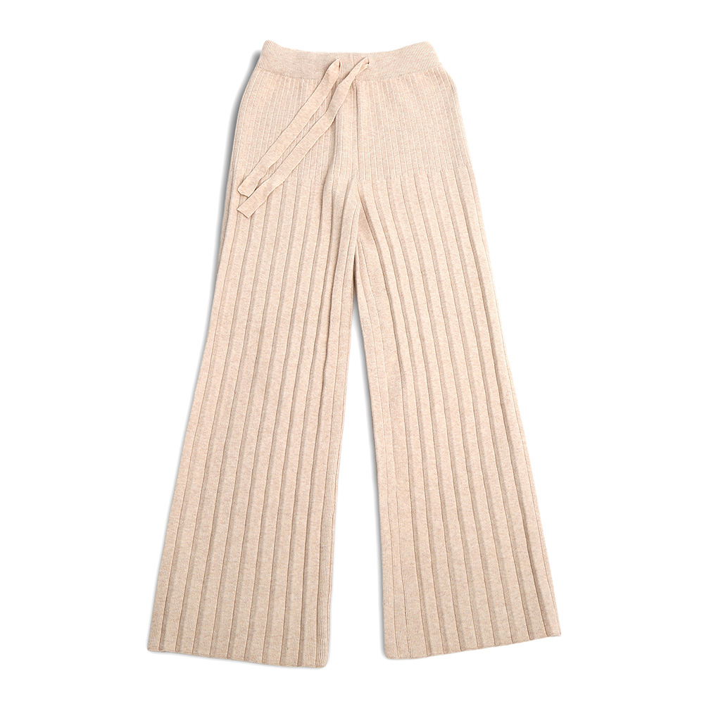 • Stay cozy and chic in these high-waist ribbed knit lounge pants. Featuring a flattering wide-leg silhouette and an adjustable tie waist, they offer the perfect balance of comfort and effortless style—ideal for relaxing at home or creating a relaxed, casual look.
