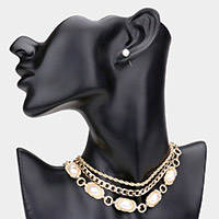 Marbled Faceted Ball Beaded Multi Layered Faux Leather Magnetic Necklace