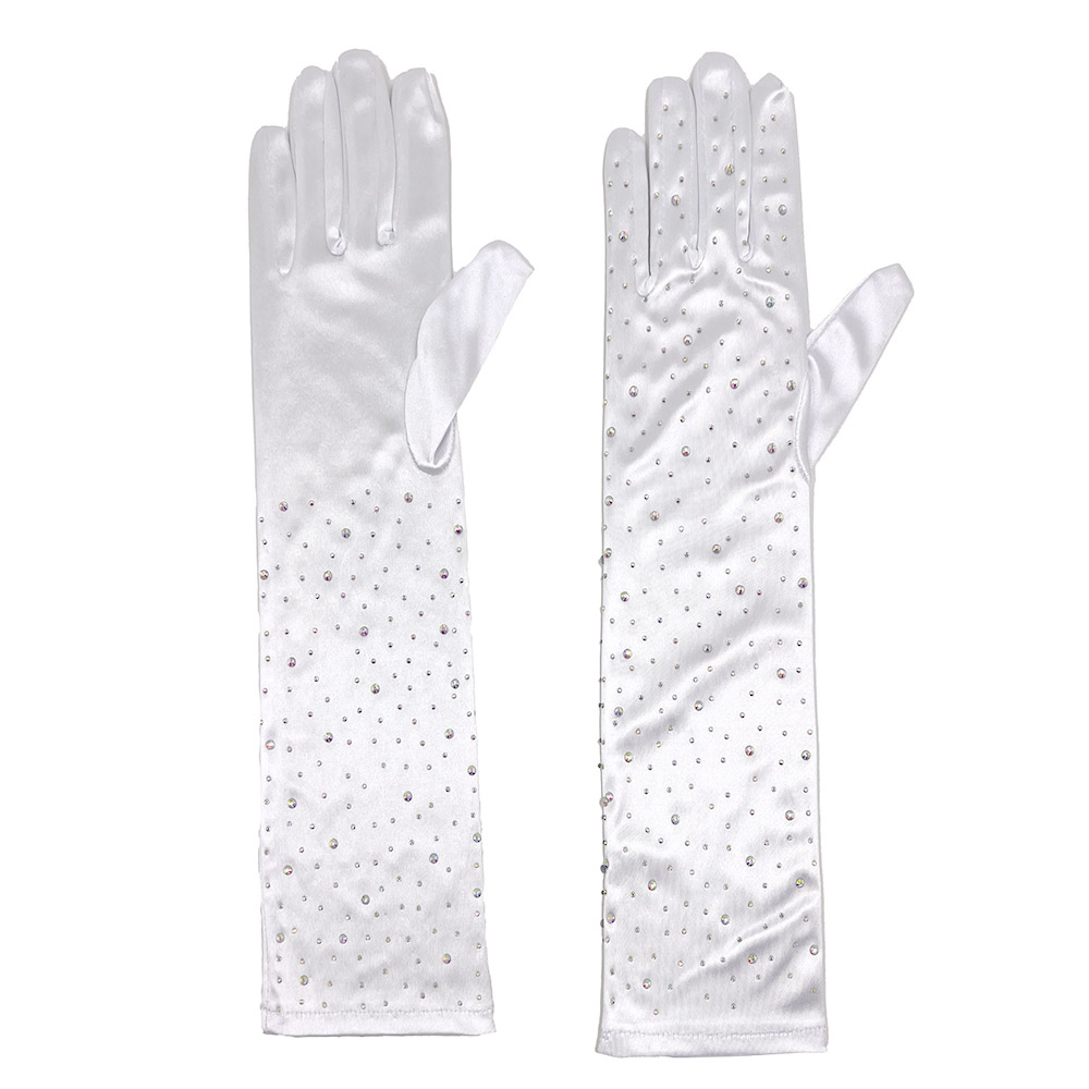 Stone Embellished Dressy Satin Long Wedding Gloves