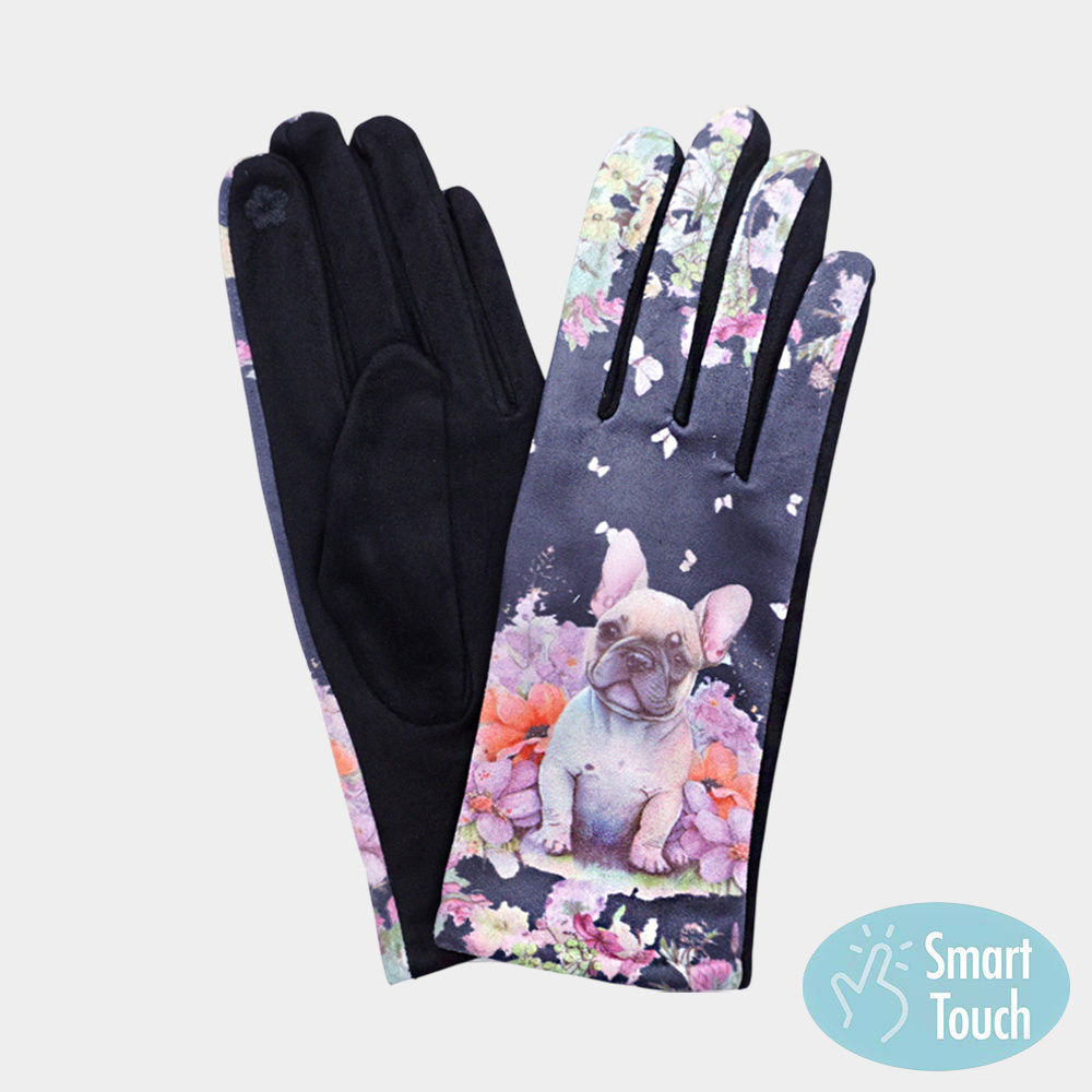 Floral French Bulldog Printed Smart Touch Gloves