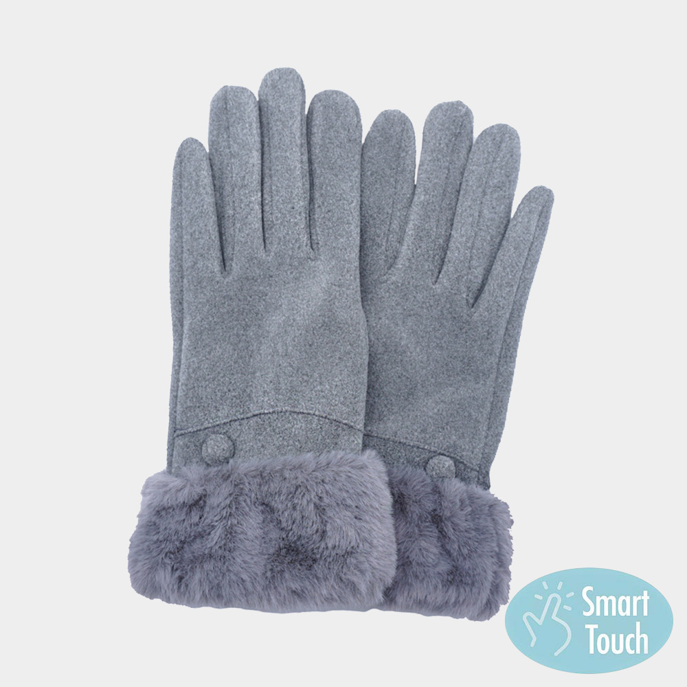 Fuzzy Fur Collar Faux Suede Smart Touch Gloves