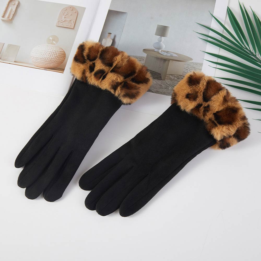 Leopard Faux Fur Wrist Trim Smart Touch Winter Gloves