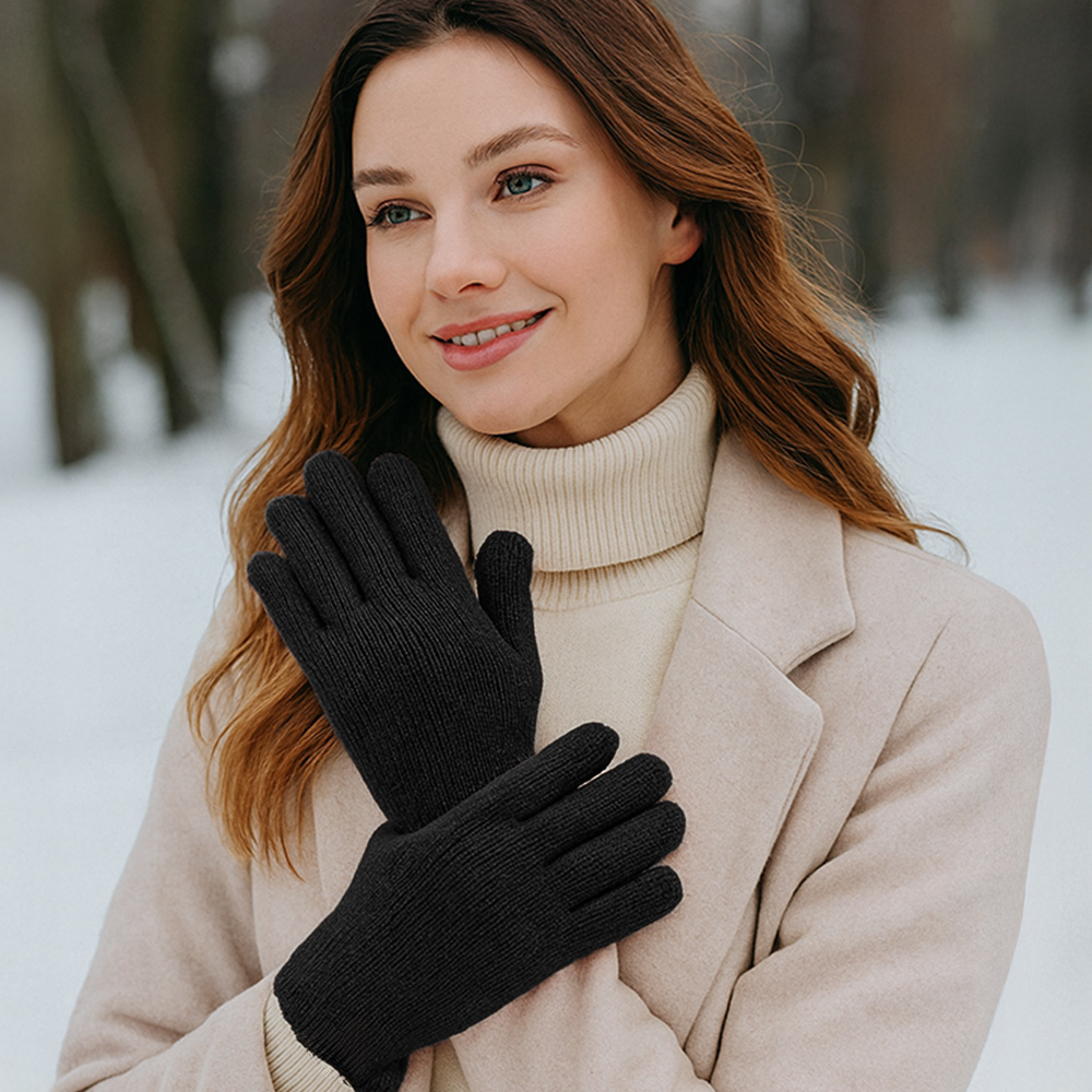 • Ribbed knit gloves with smart touch technology, offering warmth, comfort, and easy use of devices without removing them. Designed with a snug fit and simple detailing, these versatile gloves are perfect for cold-weather wear, blending practicality with timeless winter style.