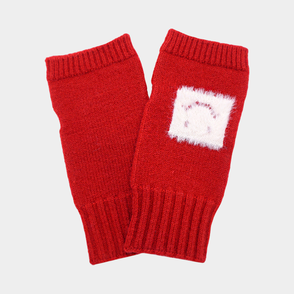 Square Smile Face Accent Fingerless Knit Gloves