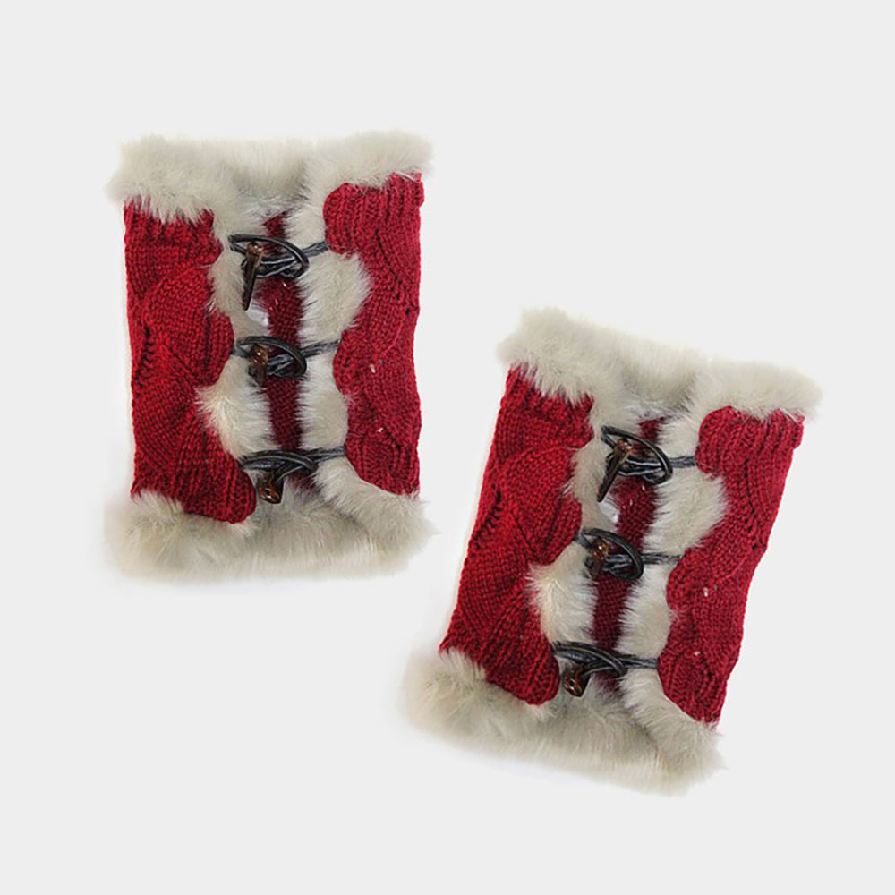• These faux fur knit boot cuff accessories add a cozy, winter-inspired charm to your favorite boots. Featuring a soft knitted pattern framed by plush faux fur trim and toggle accents, they offer both warmth and elegance—perfect for elevating cold-weather outfits with stylish flair.