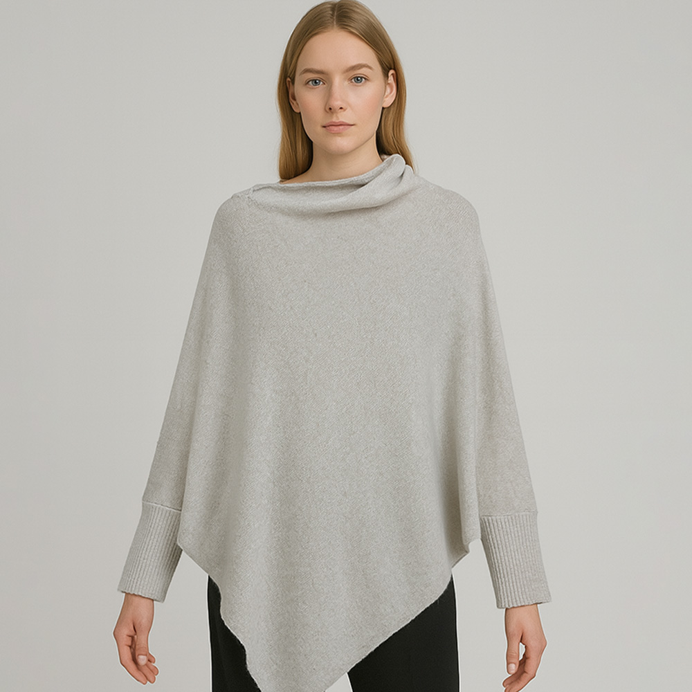 • Stay cozy and chic with this asymmetrical poncho sweater featuring a soft draped cowl neckline and relaxed silhouette. Perfect for layering, it offers effortless elegance and comfort, making it a versatile wardrobe essential for both casual days and polished looks.