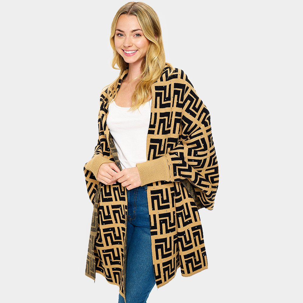 • Elevate your everyday look with this open front cardigan featuring a bold geometric pattern and relaxed silhouette. Perfect for layering over casual outfits, it combines comfort with standout style for an effortlessly chic appearance.