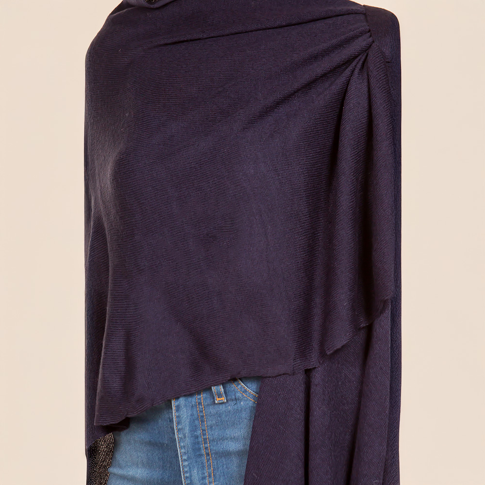 • Add effortless elegance to your wardrobe with this draped poncho wrap. Its flowing silhouette and lightweight design make it perfect for layering over casual outfits or dressing up evening looks with ease and comfort.