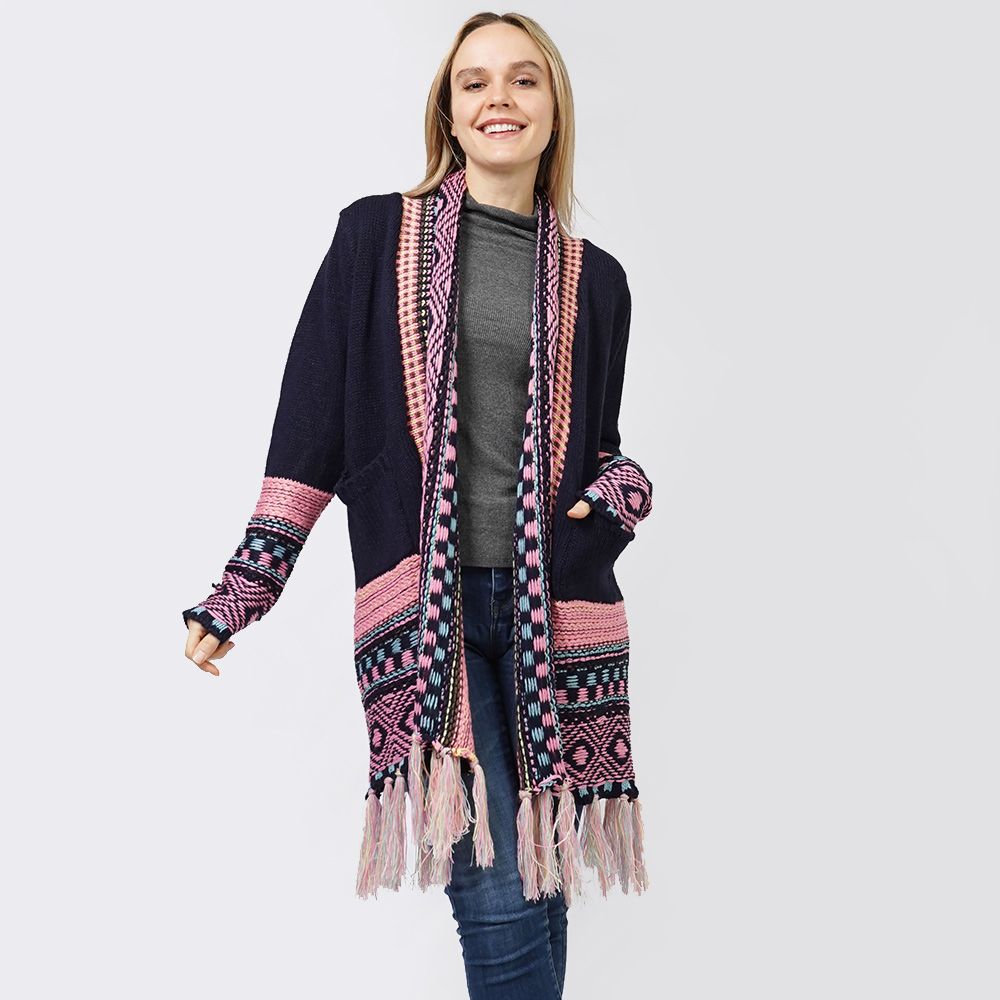 Ethnic Patterned Front Pocket Sweater Cardigan