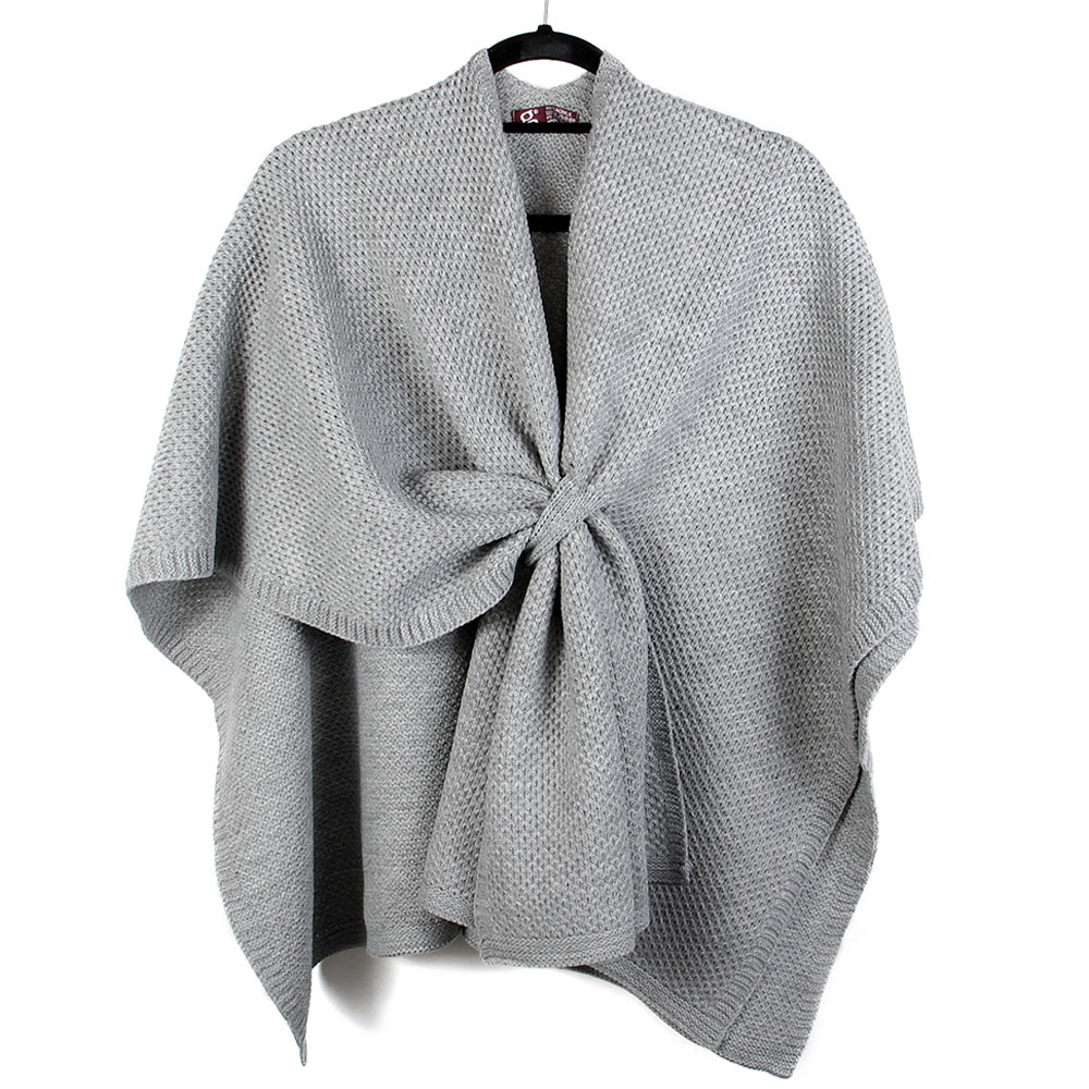 Front Tie Textured Knit Wrap Shawl Poncho Front Tie Textured Knit Wrap Shawl Poncho
