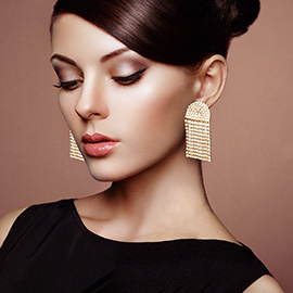 Crystal Rhinestone Pave Fringe Evening Earrings