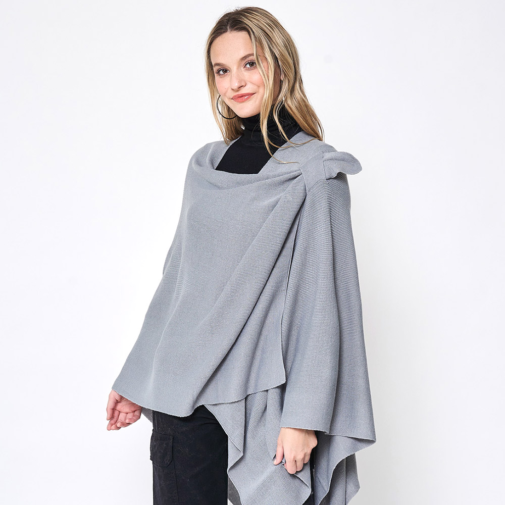 • Stylish asymmetrical poncho wrap featuring a feminine side bow and soft, cozy fabric. Perfect for layering in cool weather, this versatile piece adds warmth and elegance to any outfit—ideal for casual wear, office looks, or chic seasonal transitions.