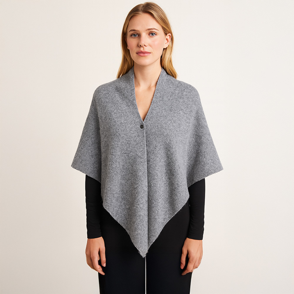Details • Size : 68.9" X 27.6" • Material : 100% Acrylic • Elevate your wardrobe with this chic poncho/scarf wrap, designed with a versatile draped silhouette and a front button detail for effortless elegance. Perfect for layering in any season, it offers comfort, style, and timeless appeal. A must-have piece for casual outings, evenings, or gifting.