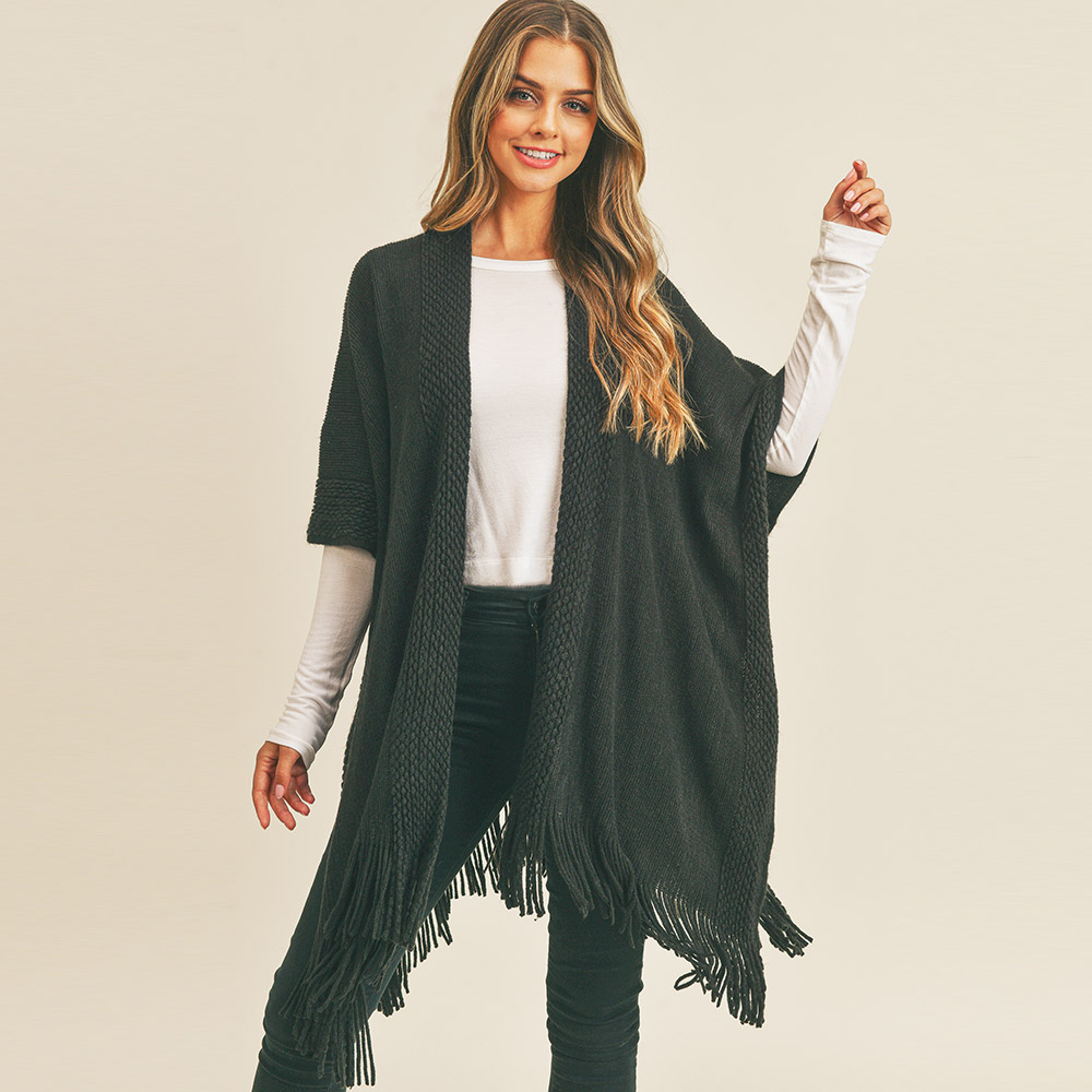 Trim Detail Fringe Kimono Poncho