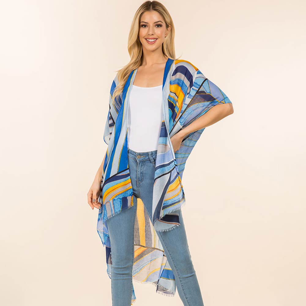Abstract Geometric Pattern Open Front Long Kimono Poncho