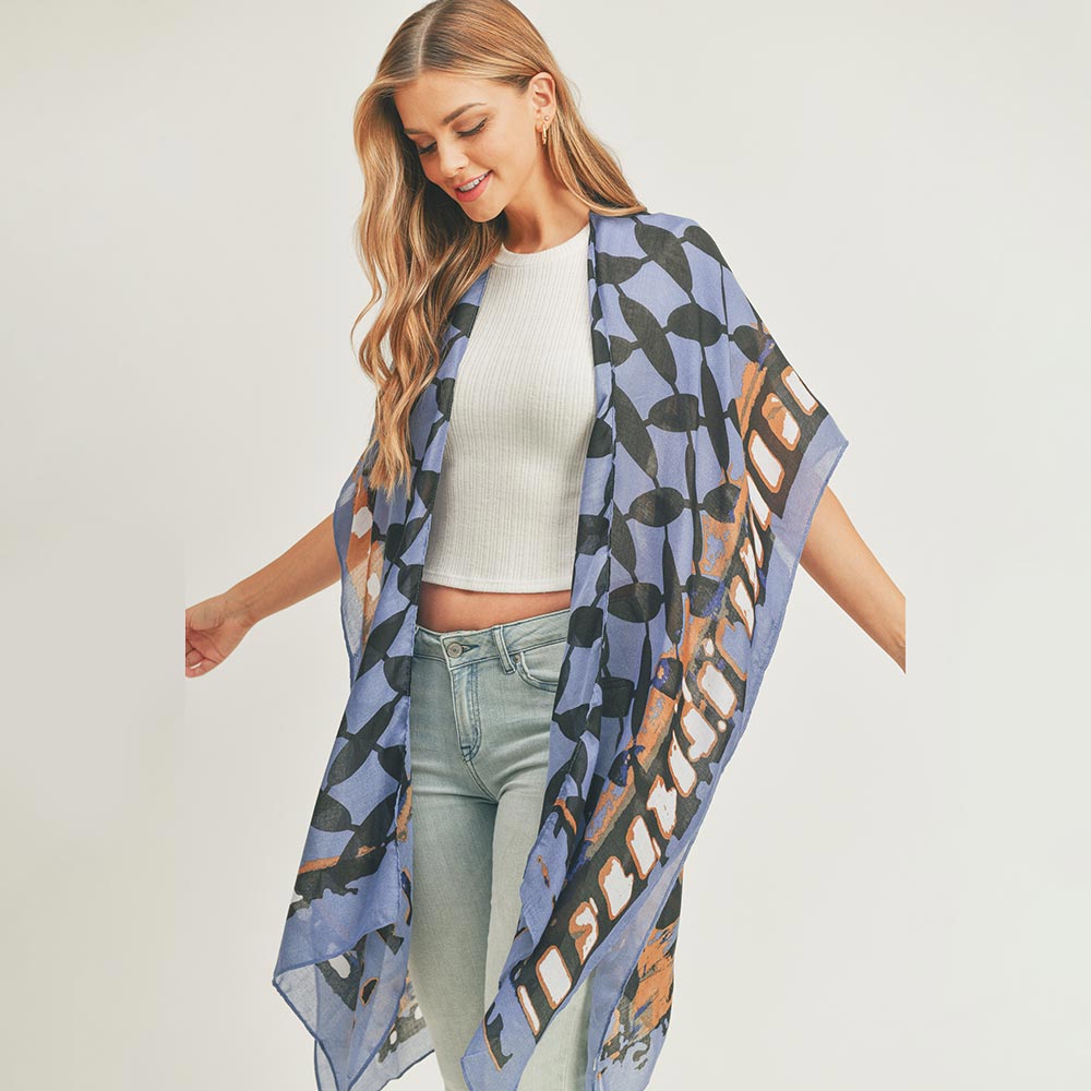 • Stylish poncho with modern geometric patterns, perfect for layering over everyday outfits. Lightweight and breathable fabric creates an effortless and flattering silhouette.