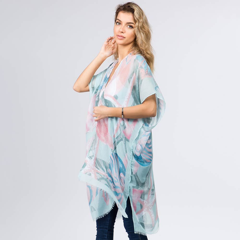 • Lightweight sheer kimono-style wrap designed with an abstract artistic print and a flowing open-front silhouette. Drapes effortlessly over tops, dresses, or casual outfits for everyday wear or travel styling. A versatile layering piece ideal for gifting and boutique collections seeking relaxed, modern elegance.