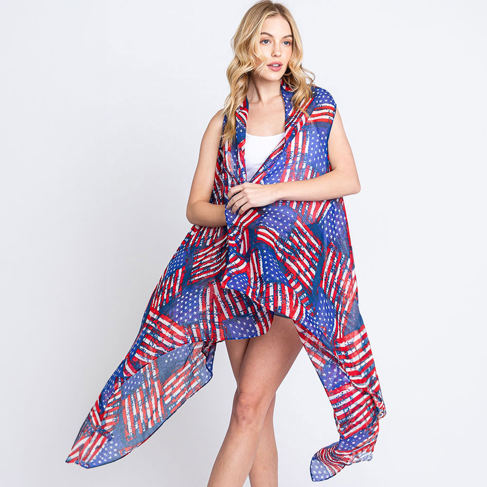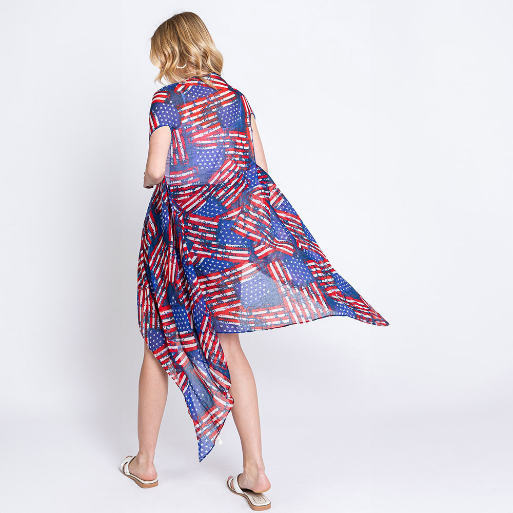 Stainless Steel Enamel American USA Flag Charm Pointed Stretch Bracelet