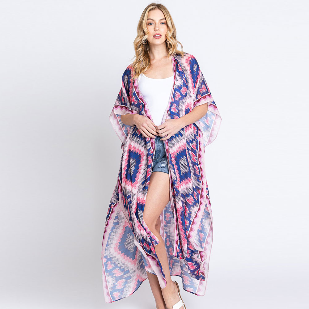 Aztec Print Open Front Long Kimono Poncho
