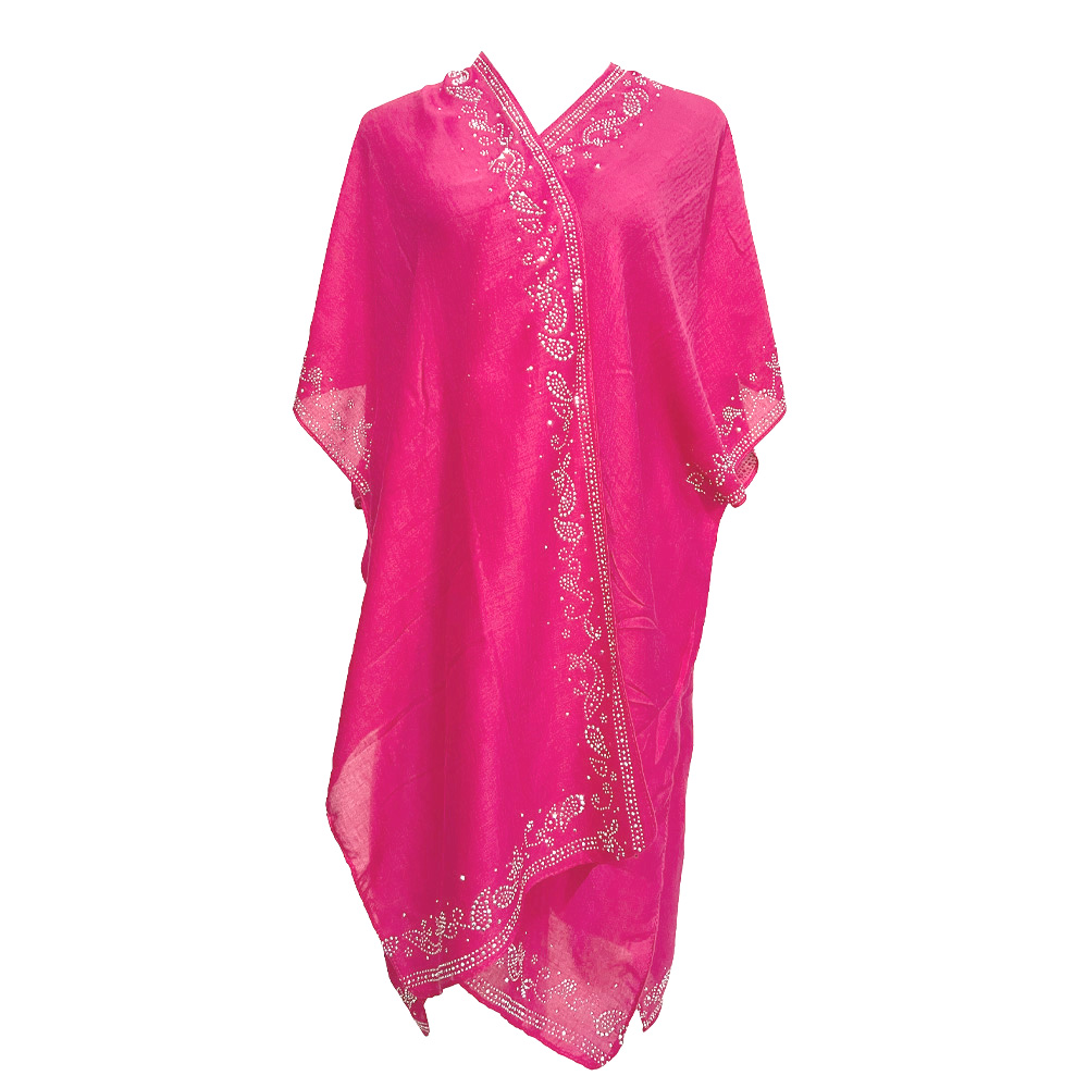 Bling Studded Leaves Pattern Pointed Kimono Poncho
